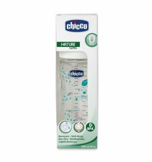 Le biberon en verre anti-colique 240 ml 0M+ de Chicco est conçu pour offrir une expérience d’alimentation naturelle et confortable aux nouveau-nés dès la naissance.